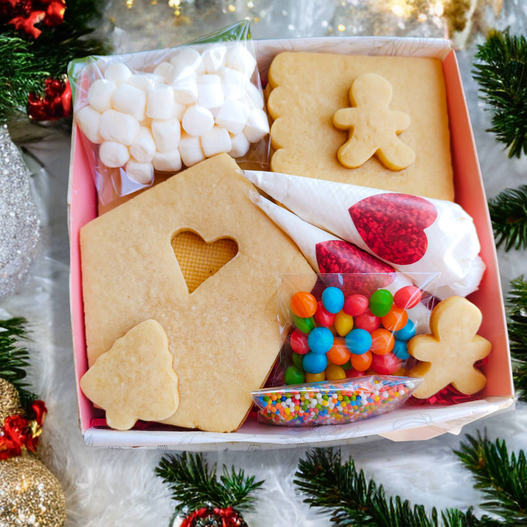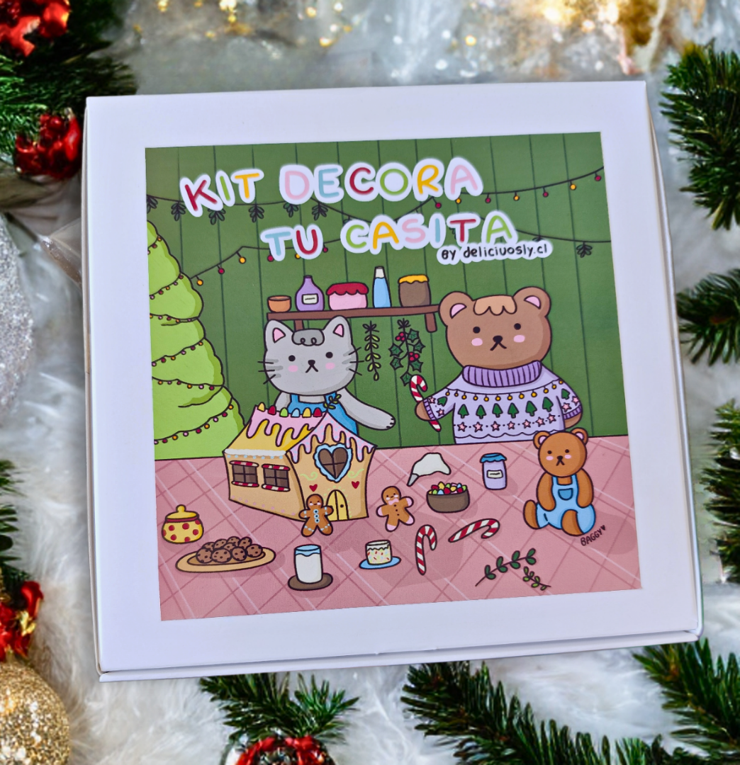 Esta cajita incluye todo lo necesario para que disfrutes junto a tus personas favoritas decorando una casita de galletas.